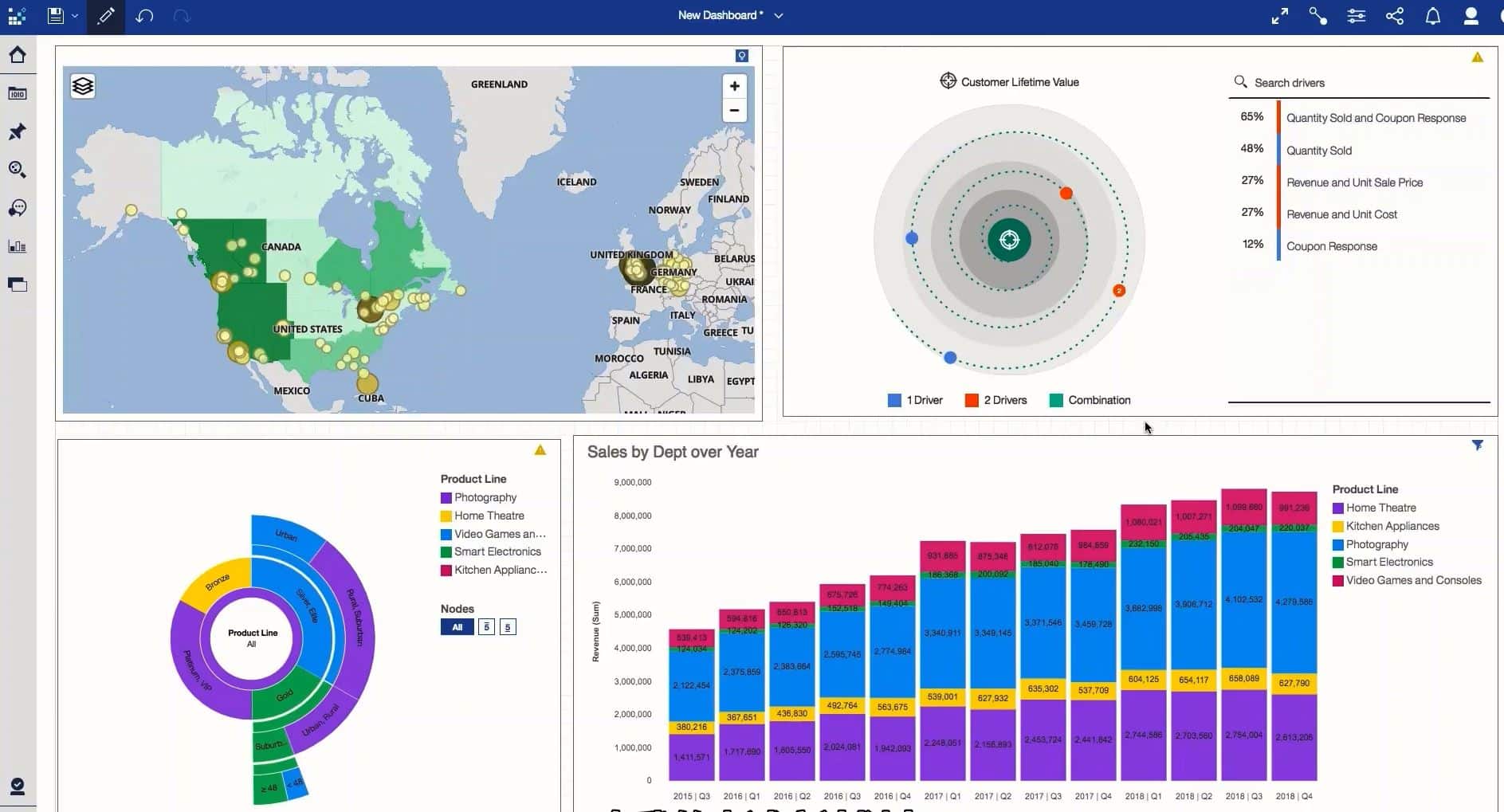 A groundbreaking analytics experience lets users freely explore data on any device using powerful global search and selections, smart visualisations and more. Empower everyone to make bigger, bolder discoveries with analytics apps and embedded analytics built into daily workflows.